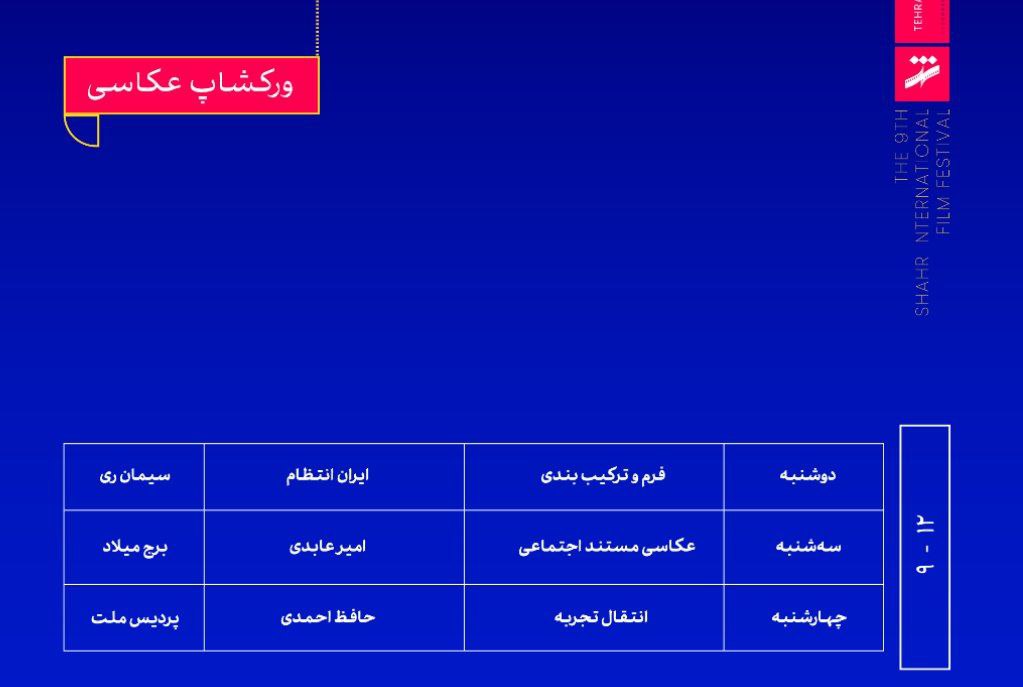 دپارتمان آموزش نهمین جشنواره بینالمللی فیلم شهر، کارگاه سه روزه عکاسی آزاد…